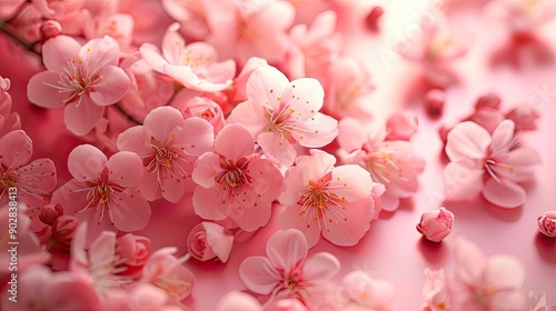 A cute pink background with a pattern of small, delicate cherry blossoms, evoking a sense of springtime.