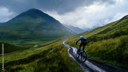 mountain, biking, bicyclist, activity, dirt, path, green, hill, cloudy, sky, rugged, terrain, nature, adventure, fitness, exercise, scenic, view, landscape, stormy, weather, trail, equipment, outdoors, recreation, healthy, lifestyle, wilderness, exploring, athletic, countryside, trail, challenging, route, sport, summer, lover, physical, travel, journey, enthusiast, remote, area, beautiful, scenery, exploration, riding, technique