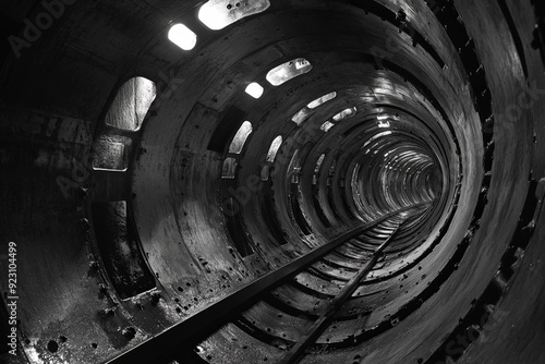 tunnel, railway, track, underground, dark, metal, industrial, transportation, evacuated, corridor, infrastructure, urban, travel, exploration, abandoned, lighting, distance, engineering, construction, circular, depth, shadow, design, empty, pathway, safety, architecture, city, transport, transit, rail, journey, passage, system, environment, contrast, steel, labyrinth, route, length, network, maintenance, geology, subway, connectivity, line, excavation, machinery, generative