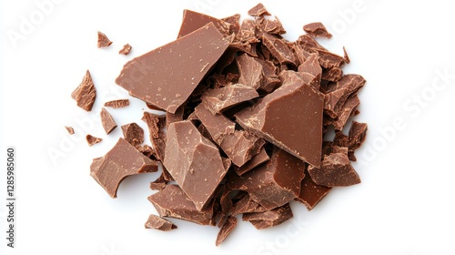 A dazzling display of a pile of scrumptious chocolate pieces on a clean white surface inviting temptation and indulgence