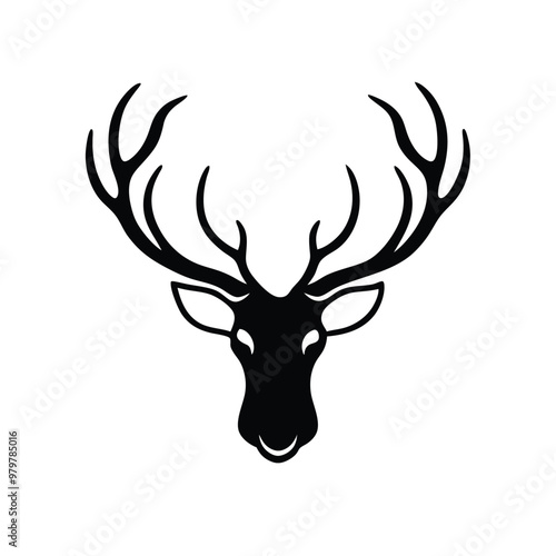cervid, animal, reindeer, vector, illustration, wild, silhouette, stag, antler, mammal, nature, head, wildlife, buck, cartoon, horn, antler, elk, art, horn, animal, design, christmas, black, hunting