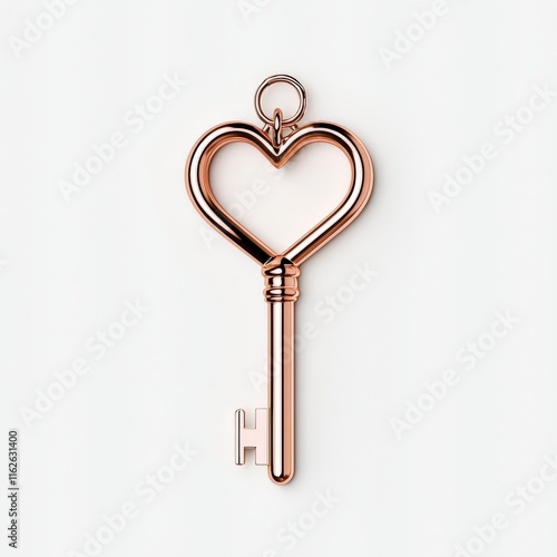 A decorative heart-shaped key made of rose gold, symbolizing love and relationships, perfect for romantic themes.