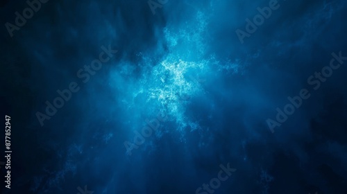 A deep blue background with a subtle, glowing light source in the center, giving a sense of depth and mystery