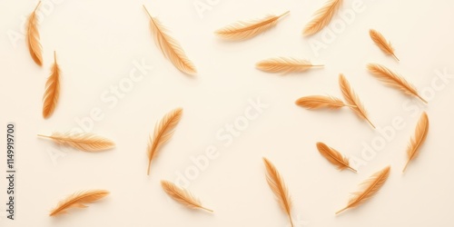 A Delicate Arrangement of Light Brown Feathers on a Cream Background