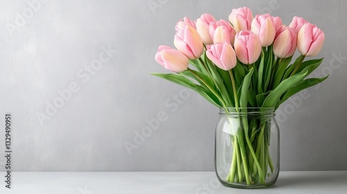 A Delicate Bouquet of Pink Tulips in a Glass Jar
