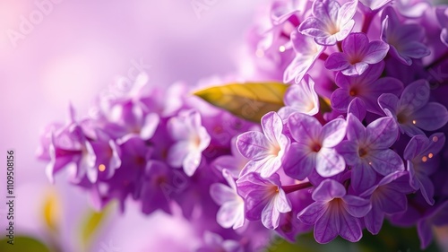A delicate cluster of vibrant purple blossoms, bathed in soft sunlight, their petals unfurling with a delicate grace, showcasing the beauty of nature's artistry.