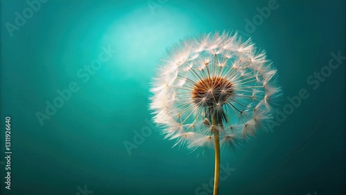 A Delicate Dandelion Seed Head Against a Teal Background, Symbolizing Nature's Ephemeral Beauty and the Passage of Time