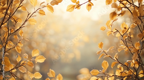 A delicate frame of golden autumn leaves and thin twigs, with a soft vignette effect to focus attention on the center