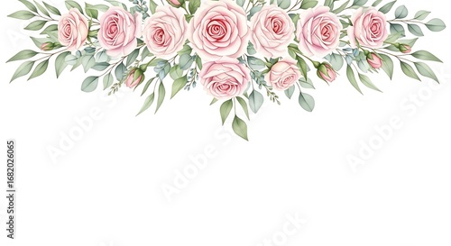 rose, flower, floral, pink, green, leaf, foliage, botanical, garden, nature, bloom, flower petals, decorative, ornamental, design, element, garland, border, illustration, watercolor, painting, art, hand-drawn, vintage, elegant, romantic, feminine, soft, delicate, beautiful, pretty, fresh, organic, natural, spring, summer, wedding, celebration, event, invitation, greeting card, background, texture