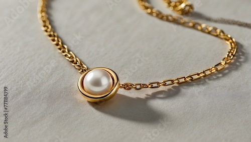 A delicate gold necklace adorned with a single, luminous pearl pendant, evoking the elegance of a bygone era Generative AI