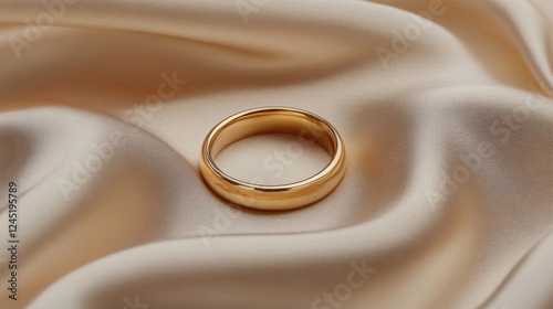 A delicate gold wedding band resting on a smooth silk fabric, symbolizing timeless love.