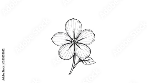 flower, drawing, white background, delicate, single, spring, nature, botanical, illustration, line art, minimalist, elegant, simple, serene, dogwood, blossom, precise, detailed