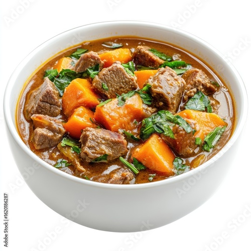 A delicious and healthy homemade beef stew with carrots and other vegetables, served in a bowl