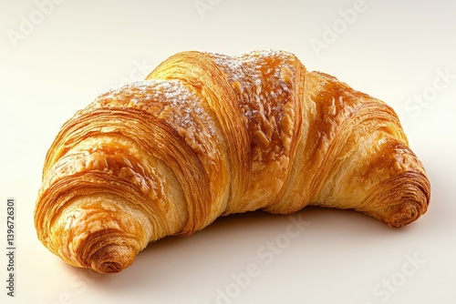 pastry, baked, gold, flaky, crescent, croissant, bread, dough, layer, butter, texture, crispy, delicate, fresh, food, sweet, breakfast, morning, treat, dessert, edible, deliciously, delicious, artisanal, bakery, crumb, honed, studio, isolated, white, background, light, shadow, angle, shape, curve, epicure, confection, dusting, powder, icing, sugar, detail, savoury, homemade, appetising