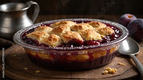 dessert, cobbler, fruit, baked, sweet, pastry, berry, plum, crust, homemade, rustic, warm, comfort, treat, receipe, delicious, indulgent, serving, dish, spoon, table, wood, kitchen, family, gathering, seasonal, summer, fresh, ingredient, sugar, flour, butter, baking, gold, texture, aroma, favor, slice, share, enjoy, plate, presentation, festive, colourful, appetising, culinary, tradition, enjoyment, sweetness