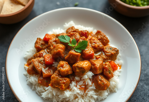 curry, rice, dish, food, indian, cookery, meal, lunch, dinner, delicious, tasty, eatery, cook, receipe, gastronomy, culinary, closeup, plate, portion, serving, epicure, fresh, ingredient, nourishment, diet, health, homemade, traditional, asian, spice, favor, aroma, meat, vegetable