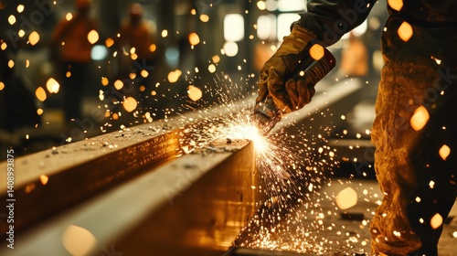 A demolition crew member cutting through steel beams with a plasma torch. Featuring precision and power
