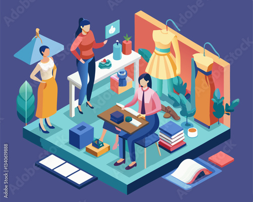 designer, create, fashionable, clothes, isometric, three-dimensional, image, garment, dress, outfit, clothing, illustration, sewing, design, fashion, aesthetic, artistic, attire, colourful, contemporary, creativity, expression, imagination, innovation, inspiration, joy, professional, skill, stylish, textile, artist, fabric, mannequin, mechanism, needle, person, work, workspace, handcraft, craft, thread, woman, creative, dressmaking
