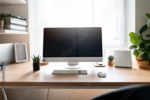 generative, ai, background, business, design, technology, office, computer, table, laptop, light, home, space, concept, white, interior, room, digital, work, communication, plant, cyberspace, web, lifestyle, desk, environment, notebook, modern, day, wooden, keyboard, desktop, networking, screen, information, daylight, workplace, contraption, studio, empty, blank, workspace, casual attire, nobody, closeup, indoor, search, display