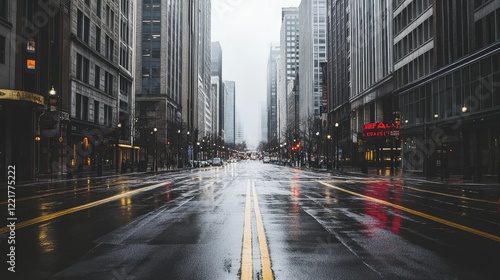 A desolate cityscape with overcast skies and empty streets, symbolizing urban decay and negative energy.