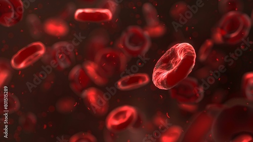 A detailed 3D illustration depicting red blood cells flowing through a vessel, highlighting their structure and movement