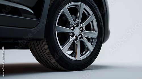 A detailed and sleek image of a rubber tire paired with a shiny chrome rim, emphasizing durability and style. Perfect for automotive, industrial, or design-related themes.