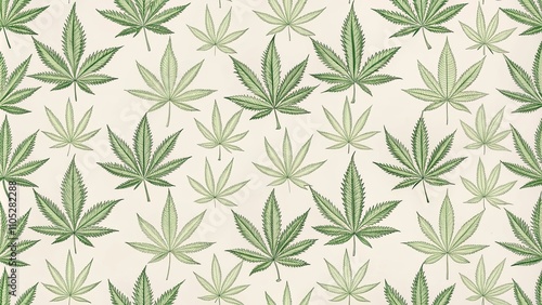 cannabis, hemp, ganja, leaf, foliage, botanical, illustration, pattern, seamless, texture, background, design, green, plant, nature, detailed, vintage, retro, drawing, artwork, botany, herbal