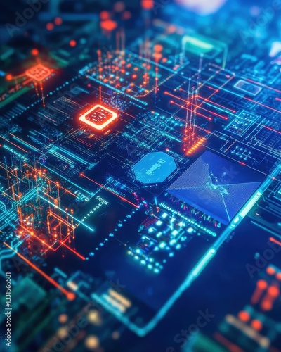 circuit, board, computer, technology, electronic, closeup, detail, pathway, component, metallic, texture, colours, vibrant, blue, background, design, innovation, hardware, microchip, circuitry, digital, modern, science, engineering, system, network, signal, power, datum, connection, layout, precision, intricate, visual, aesthetic, abstract, futuristic, equipment, device, performance, analysis, research, development, manufacturing, production, industry, automation, schematic