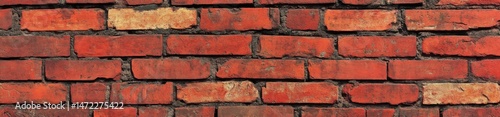 A detailed close-up view of an aged brick wall, showcasing the rich texture and variations in color of the bricks and mortar. : Generative AI