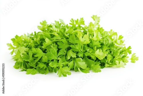 A detailed close-up view of vibrant green leaves arranged neatly on a clean white surface, highlighting their texture and color contrast.