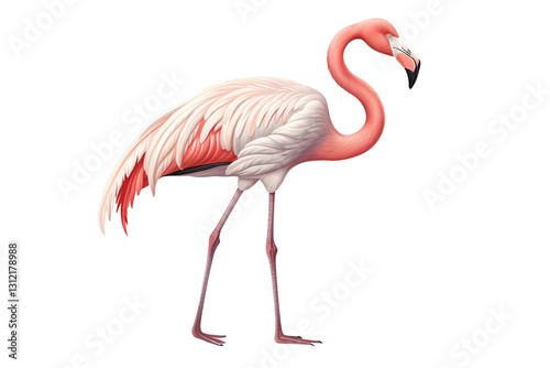 A detailed illustration of a flamingo, showcasing its vibrant pink feathers and elegant posture.