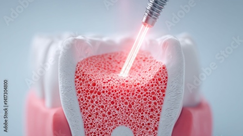 A detailed illustration of a tooth being treated with a laser, emphasizing dental healthcare.