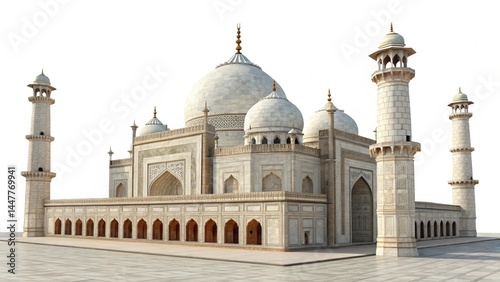 "A detailed PNG image of Badshahi Mosque with a white background, showing Mughal-style architecture, domes, and minarets"