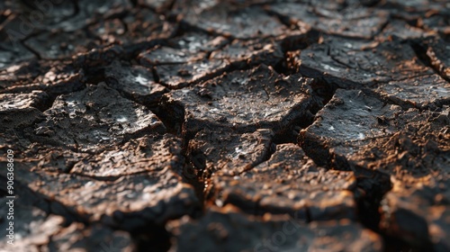A detailed texture of cracked, dry earth, with intricate fissures forming a complex network