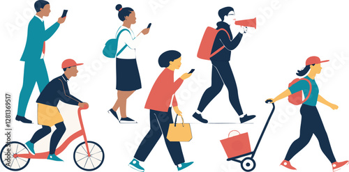 A detailed vector illustration featuring a diverse group of people engaged in various everyday activities