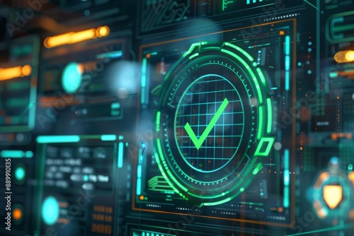 information, green, tick, icon, success, approved, passed, correct, technology, datum, digital, computer, cyberspace, light, business, illustration, pattern, futuristic, background, compliance, verification, secure, secured, protection, security, safe, leak, firewall, shield