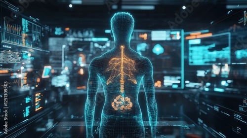 hologram, digital, immune, system, defense, mechanism, futuristic, technology, medicals, health care, science, immunity, protection, anti virus, infection, biology, microscopic, virtual, visualisation, anatomy, human, body, medicine, research, innovation, diagnostic, treatment, prevention, security, cell, antibody, molecular, genetic, deoxyribonucleic acid, datum, interface, artificial, intelligence, high technology, cyber, neon, glowing, dark, background, science fiction, network, connection, advanced