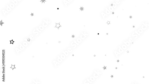 A digital illustration of scattered silver stars on a black background. The stars are of different sizes and create a sparkly, glittering effect.