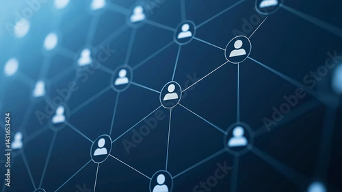 A digital network visualization featuring interconnected user icons, symbolizing social connections and online interactions in a tech-driven environment.