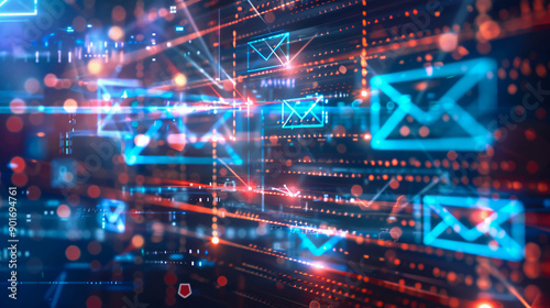 A digital representation of spam filters and email security systems, highlighting the fight against unwanted and malicious emails