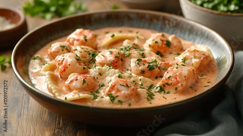 lobster, ravioli, creamy, pink, sauce, garnish, fresh, parsley