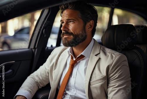 person, man, clothing, vehicle, car, human face, land vehicle, shirt, collar, wearing, suit, attaching, fashion, businessman, professional, confident, elegant, stylish, executive, formal, dapper, urban, sophisticated, trendy, modern, photogenic, charismatic, charme, power, success, ambition, authority, business, career, finance, entrepreneur, leadership, achievement, determination, sharpened, drive, purpose, elegance, class, luxury