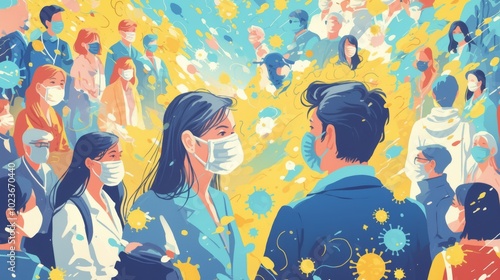 masked, crowd, colourful, paint, diverse, hope, outdoors, diversity, vibrant, splash, colours, oneness, resilience, community, gathering, emotion, pandemic, safety, public, expression, energy, connection, urban, street, art, modern, mask, people, composition, illustration, society, era, humanity, cultural, health, inspiration, collective, atmosphere, visual, social, solidarity