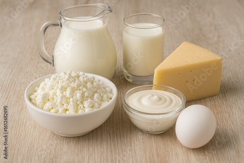 A diverse selection of dairy products providing vital nutrients like calcium, magnesium, and proteins