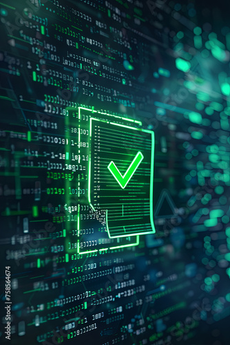 A document icon with a tick to approve a compliance policy for cyber security