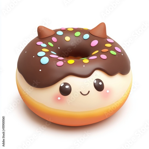 A donut topped with rich chocolate frosting and colorful sprinkles, isolated on white background, highlighting classic dessert appeal and vibrant textures, suitable for seasonal promotions