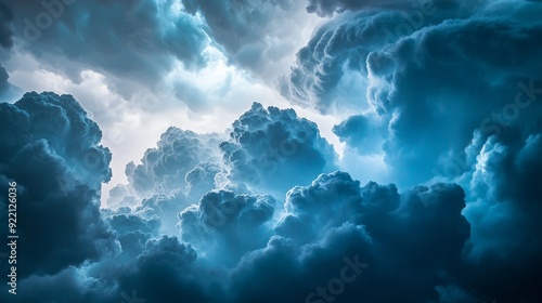 A dramatic cloud formation during a thunderstorm, with towering cumulonimbus clouds and dark, heavy rain. The scene captures the raw power of nature and the intensity of the storm.