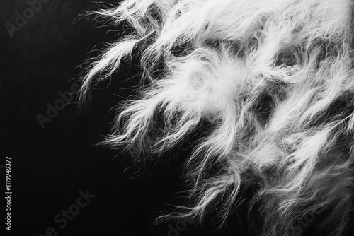 A dramatic depiction of white wispy hair against a dark background, highlighting its intricate details and textures.