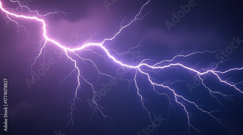 A dramatic display of purple lightning against a dark sky, showcasing nature's raw power in a vivid and striking manner.