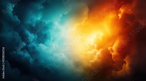 A dramatic image featuring vibrant blue and orange clouds, creating a striking contrast and evoking a sense of cosmic energy.